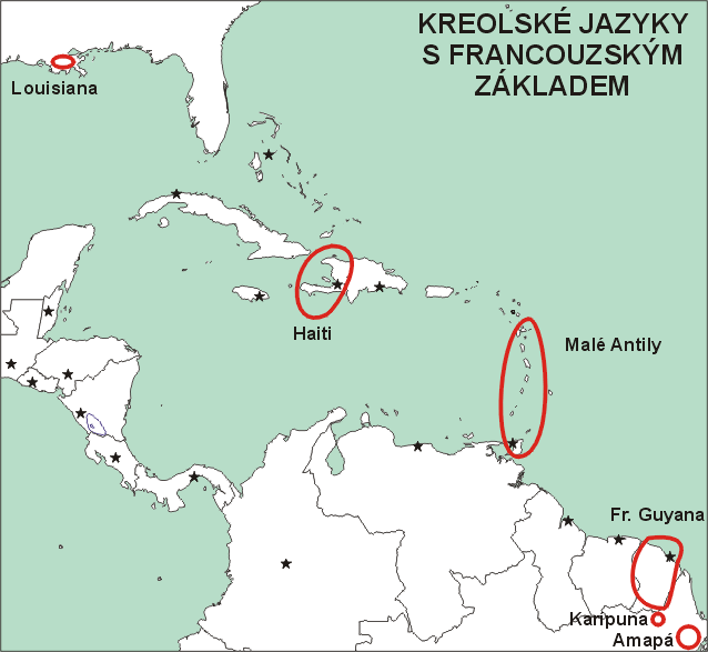 Kreolské jazyky Střední Ameriky na bázi angličtiny (detail Malých Antil), Kreolské jazyky Střední Ameriky na bázi francouzštiny